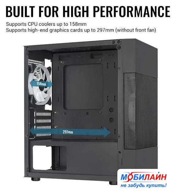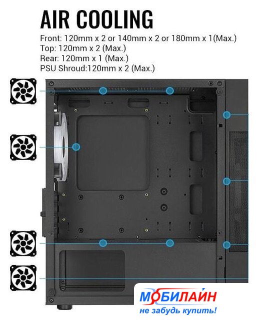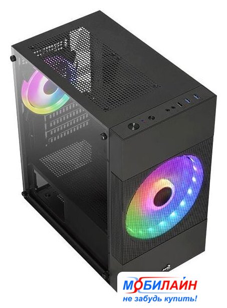 аквариум/Mini Tower, БП отсутствует, для плат micro-ATX/mini-ITX, в комплекте 3 вентилятора, окно: закаленное стекло, видеокарта до 405 мм, охлаждение ЦП до 170 мм, пылевые фильтры, 1xUSB 2.0, 1xUSB-A 3.2 5Гбит/с, цвет черный