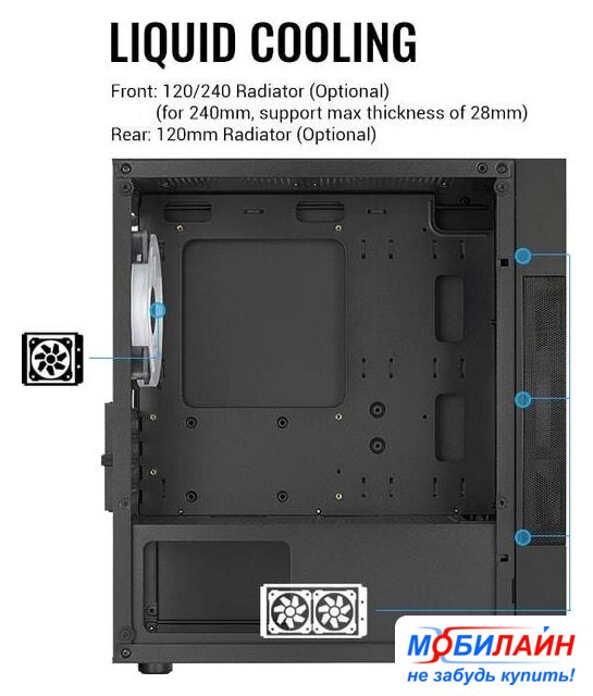 | Цвет подсветки кулера | многоцветный адресный (ARGB) |