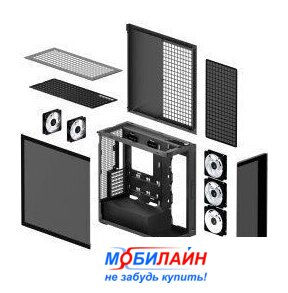 Mid Tower, БП отсутствует, для плат ATX/micro-ATX/mini-ITX, в комплекте 4 вентилятора, окно: закаленное стекло, видеокарта до 375 мм, охлаждение ЦП до 180 мм, пылевые фильтры, 2xUSB-A 3.2 5Гбит/с, 1xUSB-C 3.2 5Гбит/с, цвет черный