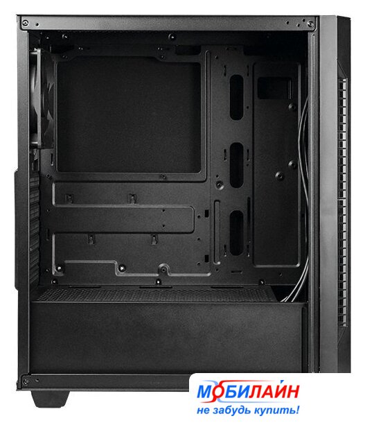 аквариум/Mini Tower, БП отсутствует, для плат micro-ATX/mini-ITX, в комплекте 3 вентилятора, окно: закаленное стекло, видеокарта до 392 мм, охлаждение ЦП до 181 мм, пылевые фильтры, 1xUSB-A 3.2 5Гбит/с, 1xUSB-C 3.2 5Гбит/с, цвет черный