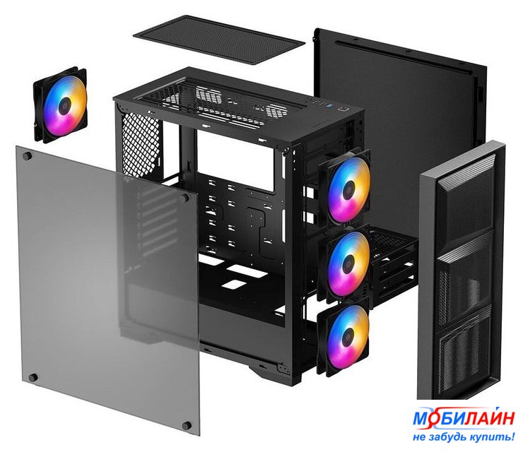Mid Tower, БП отсутствует, для плат ATX/micro-ATX/eATX/mini-ITX, в комплекте 4 вентилятора, окно: закаленное стекло, видеокарта до 355 мм, охлаждение ЦП до 180 мм, пылевые фильтры, 1xUSB 2.0, 1xUSB-A 3.2 5Гбит/с, 1xUSB-C 3.2 5Гбит/с, цвет черный