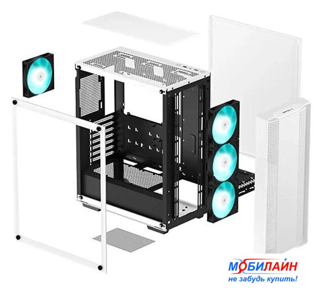 Mid Tower, БП отсутствует, для плат ATX/micro-ATX/mini-ITX, в комплекте 4 вентилятора, окно: закаленное стекло, видеокарта до 310 мм, охлаждение ЦП до 160 мм, пылевые фильтры, 2xUSB 2.0, 1xUSB-A 3.2 5Гбит/с, цвет черный