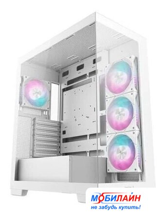 Mid Tower, БП отсутствует, для плат ATX/micro-ATX/mini-ITX, в комплекте 4 вентилятора, окно: закаленное стекло, видеокарта до 380 мм, охлаждение ЦП до 165 мм, пылевые фильтры, 2xUSB 2.0, 2xUSB-A 3.2 5Гбит/с, цвет белый