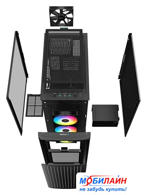 Mid Tower, БП отсутствует, для плат ATX/micro-ATX/eATX/mini-ITX, в комплекте 4 вентилятора, окно: закаленное стекло, видеокарта до 400 мм, охлаждение ЦП до 165 мм, пылевые фильтры, 2xUSB-A 3.2 5Гбит/с, цвет черный