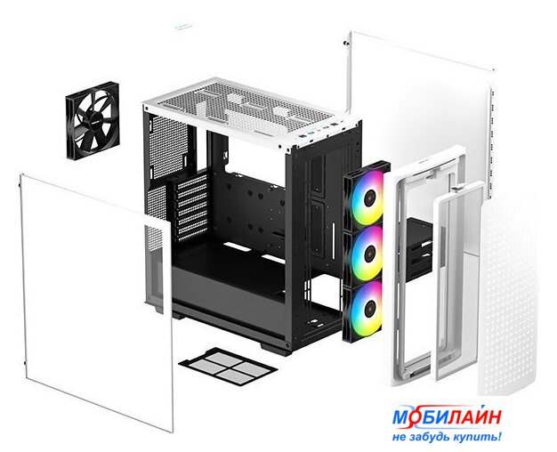 Mid Tower, БП отсутствует, для плат ATX/micro-ATX/mini-ITX, в комплекте 4 вентилятора, окно: закаленное стекло, видеокарта до 375 мм, охлаждение ЦП до 180 мм, пылевые фильтры, 2xUSB-A 3.2 5Гбит/с, 1xUSB-C 3.2 5Гбит/с, цвет черный
