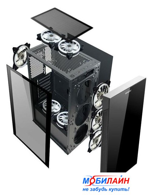 Mini Tower, БП отсутствует, для плат micro-ATX/mini-ITX, с 4 вентиляторами в комплекте, с контроллером вращения, окно: закаленное стекло, видеокарта до 410 мм, охлаждение ЦП до 180 мм, пылевые фильтры, 1xUSB 2.0, 1xUSB-A 3.2 5Гбит/с, 1xUSB-C 3.2 5Гбит/с, цвет черный