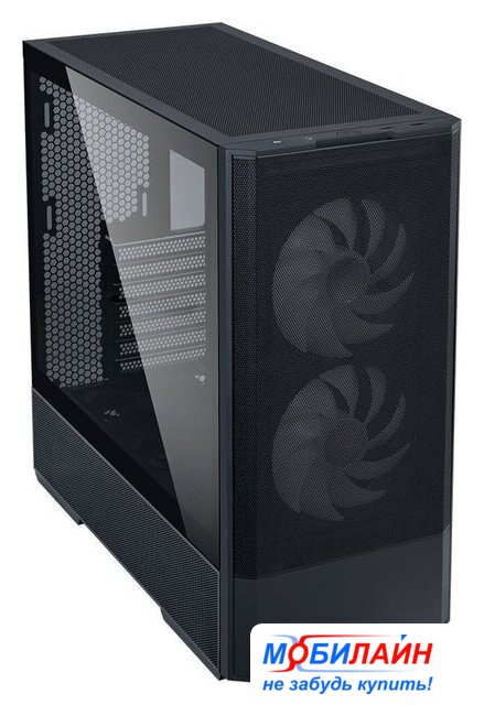Mid Tower, БП отсутствует, для плат ATX/micro-ATX/mini-ITX, в комплекте 2 вентилятора с контроллером вращения, окно: закаленное стекло, видеокарта до 425 мм, охлаждение ЦП до 165 мм, пылевые фильтры, 2xUSB-A 3.2 5Гбит/с, цвет черный