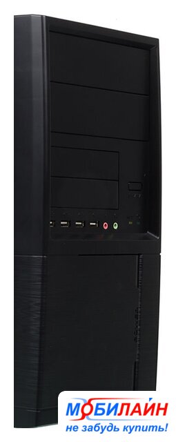 Mid Tower, БП отсутствует, для плат ATX/micro-ATX/mini-ITX, видеокарта до 260 мм, охлаждение ЦП до 145 мм, 2xUSB 2.0, цвет черный