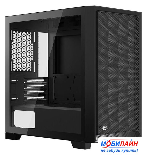 аквариум/Mid Tower, БП отсутствует, для плат ATX/micro-ATX/mini-ITX, окно: закаленное стекло, видеокарта до 400 мм, охлаждение ЦП до 168 мм, пылевые фильтры, 2xUSB 2.0, 1xUSB-A 3.2 5Гбит/с, цвет черный