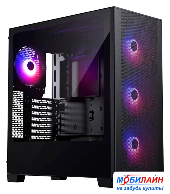 Mid Tower, БП отсутствует, для плат ATX/micro-ATX/mini-ITX, в комплекте 4 вентилятора, окно: закаленное стекло, видеокарта до 380 мм, охлаждение ЦП до 160 мм, 2xUSB 2.0, 1xUSB-A 3.2 5Гбит/с, цвет черный