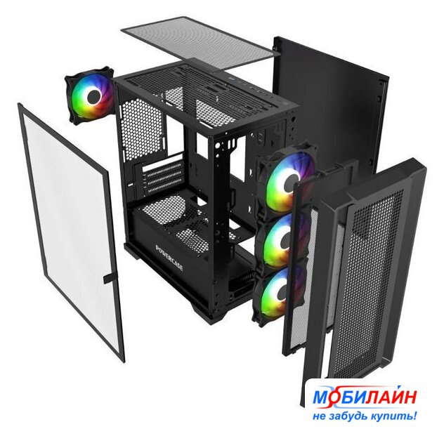 Mid Tower, БП отсутствует, для плат ATX/micro-ATX/mini-ITX, в комплекте 4 вентилятора, окно: закаленное стекло, видеокарта до 285 мм, охлаждение ЦП до 160 мм, пылевые фильтры, 2xUSB 2.0, 1xUSB-A 3.2 5Гбит/с, цвет черный