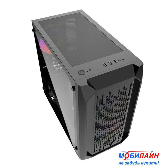 Mini Tower, БП отсутствует, для плат micro-ATX/mini-ITX, с 3 вентиляторами в комплекте, окно: закаленное стекло, видеокарта до 280 мм, охлаждение ЦП до 160 мм, 1xUSB 2.0, 1xUSB-A 3.2 5Гбит/с, цвет черный