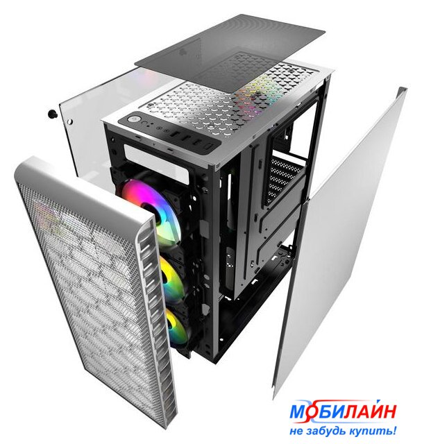 Mid Tower, блок питания отсутствует, для плат ATX/micro-ATX/mini-ITX, 4 вентилятора, 2xUSB 2.0, 1xUSB 3.0, окно: закаленное стекло, цвет корпуса черный