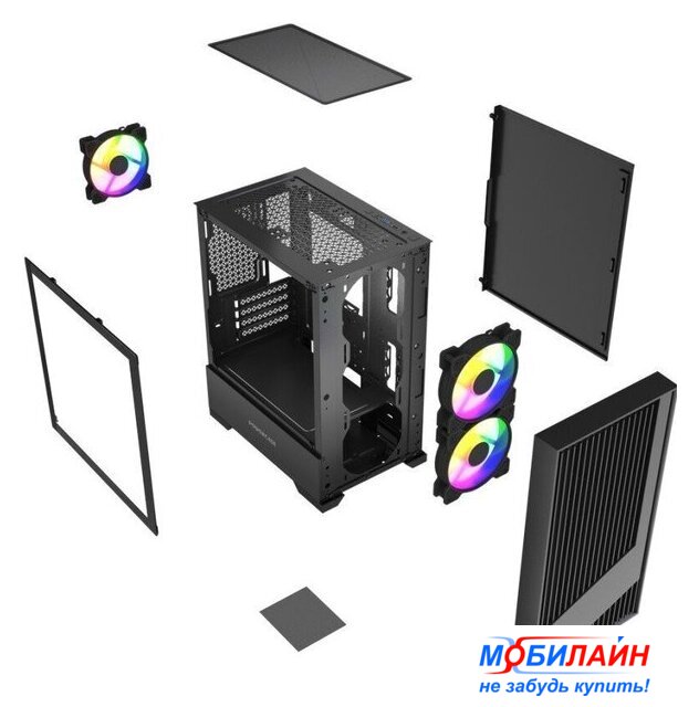 Mid Tower, БП отсутствует, для плат ATX/micro-ATX/mini-ITX, в комплекте 3 вентилятора, окно: закаленное стекло, видеокарта до 310 мм, охлаждение ЦП до 165 мм, 2xUSB 2.0, 1xUSB-A 3.2 5Гбит/с, цвет черный