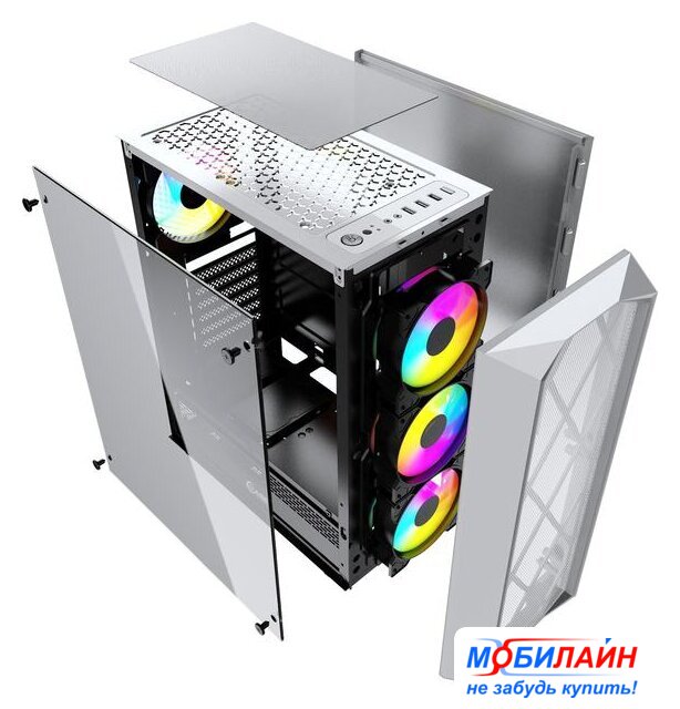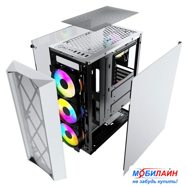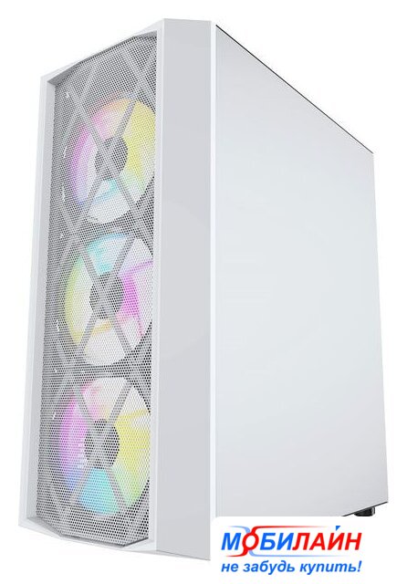 Mini Tower, БП отсутствует, для плат micro-ATX/mini-ITX, в комплекте 3 вентилятора, окно: закаленное стекло, видеокарта до 305 мм, охлаждение ЦП до 160 мм, пылевые фильтры, 2xUSB 2.0, 1xUSB-A 3.2 5Гбит/с, цвет белый