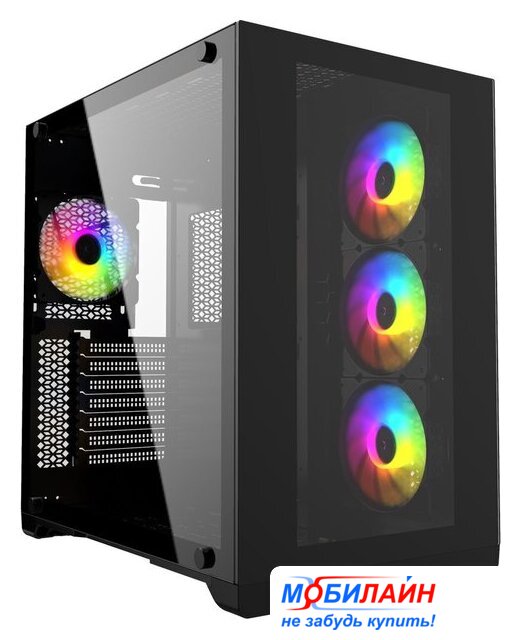 Mid Tower, БП отсутствует, для плат ATX/micro-ATX/mini-ITX, в комплекте 3 вентилятора, окно: закаленное стекло, видеокарта до 392 мм, охлаждение ЦП до 180 мм, пылевые фильтры, 2xUSB-A 3.2 5Гбит/с, 1xUSB-C 3.2 10Гбит/с, цвет черный