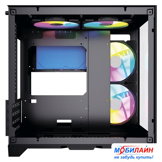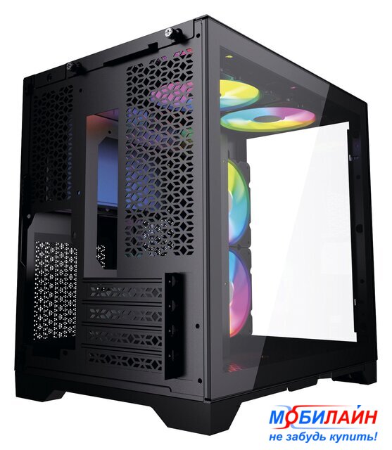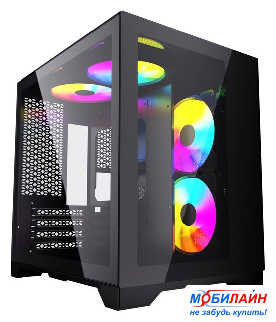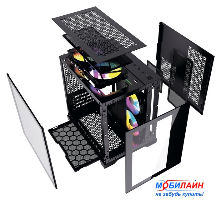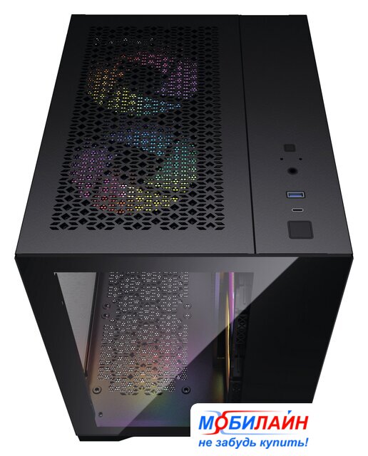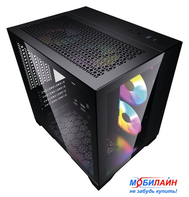аквариум/Mid Tower, для плат ATX/micro-ATX/mini-ITX, в комплекте 6 вентиляторов, окно: закаленное стекло, видеокарта до 395 мм, охлаждение ЦП до 185 мм, пылевые фильтры, 2xUSB-A 3.2 5Гбит/с, 1xUSB-C 3.2 5Гбит/с, цвет черный