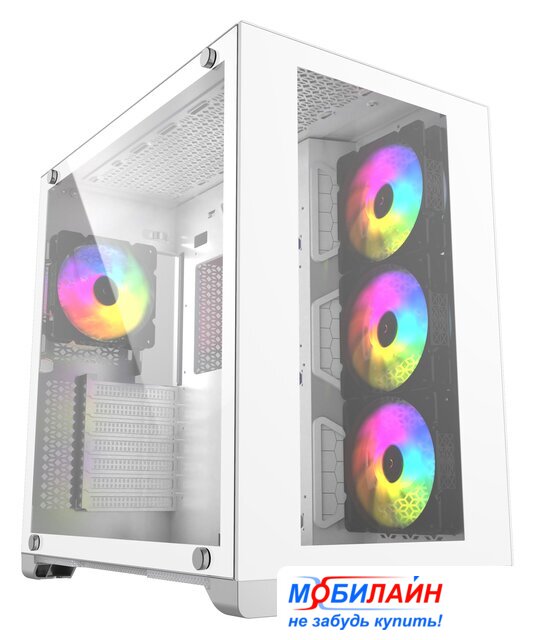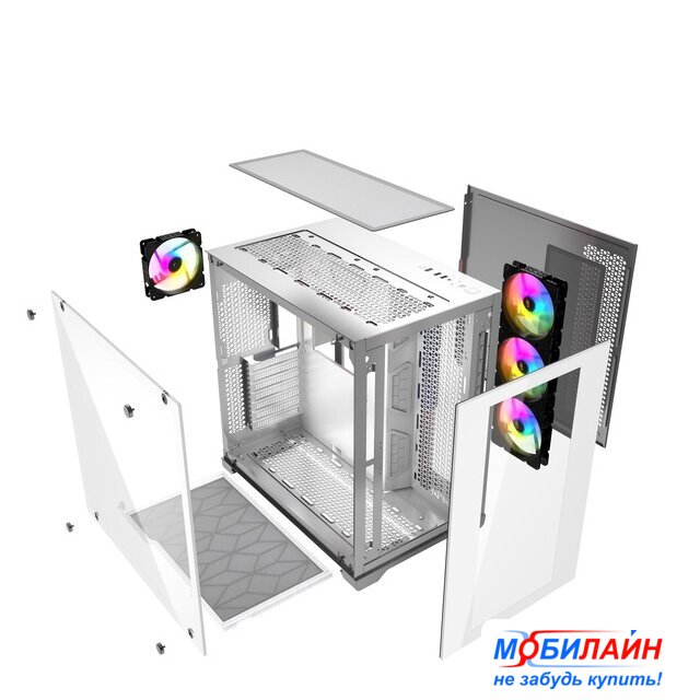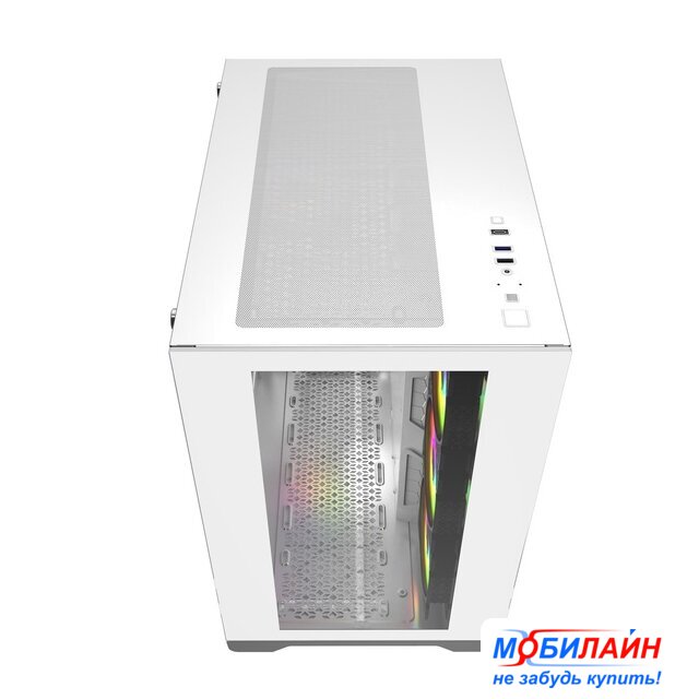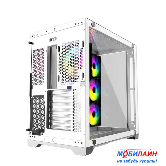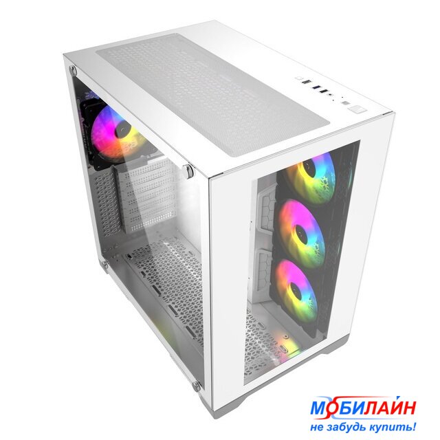 Mini Tower, блок питания отсутствует, для плат micro-ATX/mini-DTX/mini-ITX, 3 вентилятора, 2xUSB 2.0, 1xUSB 3.0, окно: закаленное стекло, цвет корпуса белый