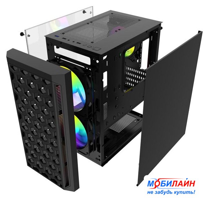 Mid Tower, БП отсутствует, для плат micro-ATX/mini-ITX, без вентиляторов в комплекте, видеокарта до 280 мм, охлаждение ЦП до 160 мм, пылевые фильтры, 1xUSB 2.0, 1xUSB-A 3.2 5Гбит/с, цвет черный