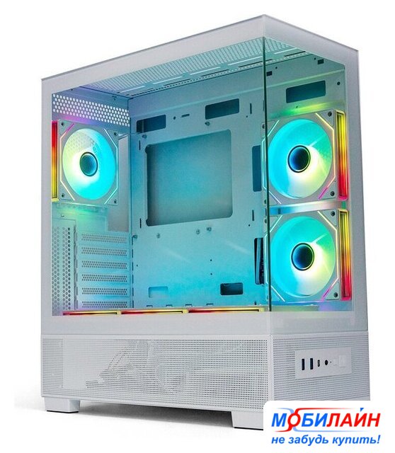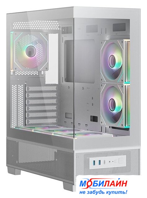 Mini Tower, БП отсутствует, для плат micro-ATX/mini-ITX, в комплекте 4 вентилятора, окно: закаленное стекло, видеокарта до 305 мм, охлаждение ЦП до 160 мм, пылевые фильтры, 2xUSB 2.0, 1xUSB-A 3.2 5Гбит/с, цвет белый