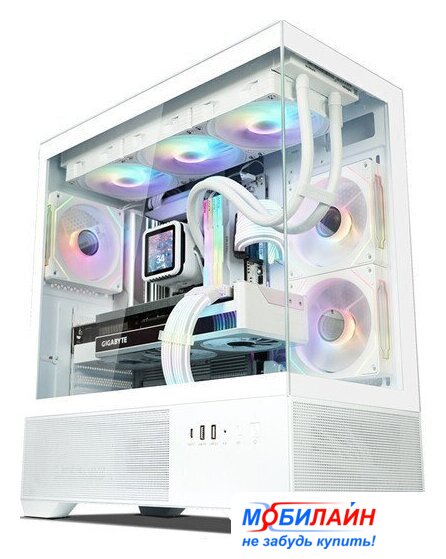 Mid Tower, БП отсутствует, для плат micro-ATX/mini-ITX, в комплекте 3 вентилятора, окно: закаленное стекло, видеокарта до 340 мм, охлаждение ЦП до 160 мм, пылевые фильтры, 1xUSB 2.0, 1xUSB-A 3.2 5Гбит/с, цвет корпуса белый