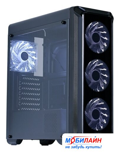Mid Tower, блок питания отсутствует, для плат ATX/micro-ATX/mini-ITX, 3 вентилятора, 2xUSB 3.0, цвет черный
