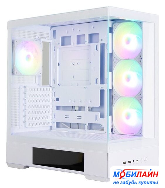 аквариум/Mid Tower, БП отсутствует, для плат ATX/micro-ATX/mini-ITX, окно: закаленное стекло, видеокарта до 450 мм, охлаждение ЦП до 182 мм, пылевые фильтры, 2xUSB-A 3.2 5Гбит/с, 1xUSB-C 3.2 5Гбит/с, цвет белый