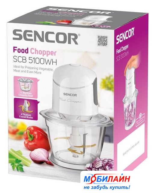 чоппер, питание от сети, 300 Вт, регулировка скорости, чаша 2 л, материал чаши: стекло, материал корпуса: пластик, белый