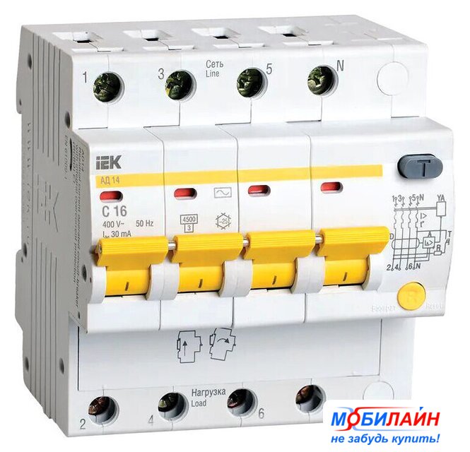 10 А, 4P, кривая тока: C, ном. отключающая способность 4.5 кА, ток утечки 30 мА