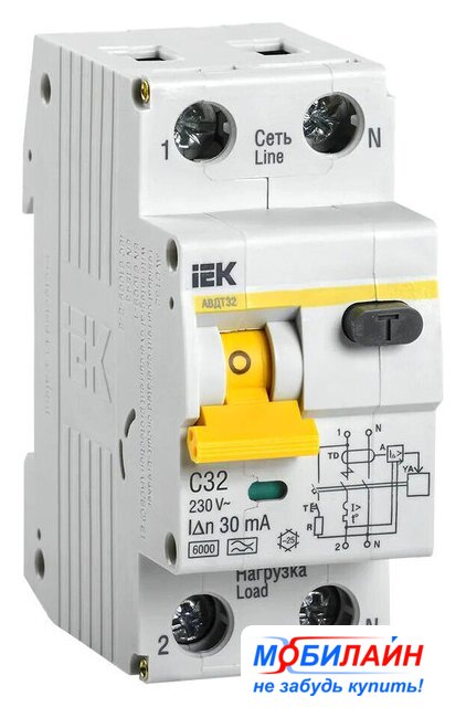 2P, ном. отключающая способность 4.5 кА, тип дифф. тока AC, ток утечки 30 мА