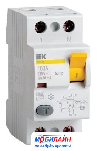 63 А, 2P, ном. отключающая способность 4.5 кА, тип дифф. тока AC, ток утечки 300 мА