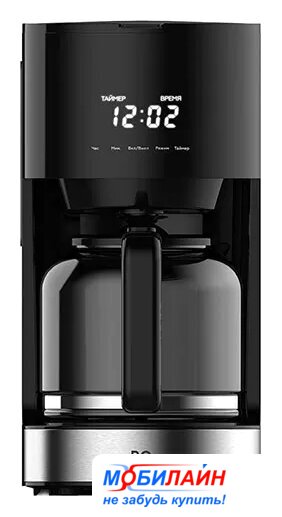 капельная кофеварка, 1000 Вт, корпус пластик, используемый кофе: молотый, цвет нержавеющая сталь/черный