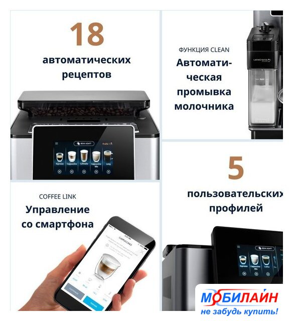 Программы приготовления | эспрессо, лунго, американо, капучино, латте макиато, флэт уайт, латте, доппио, кортадо, лонг блэк, горячее молоко |