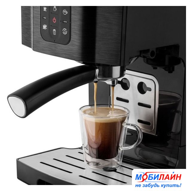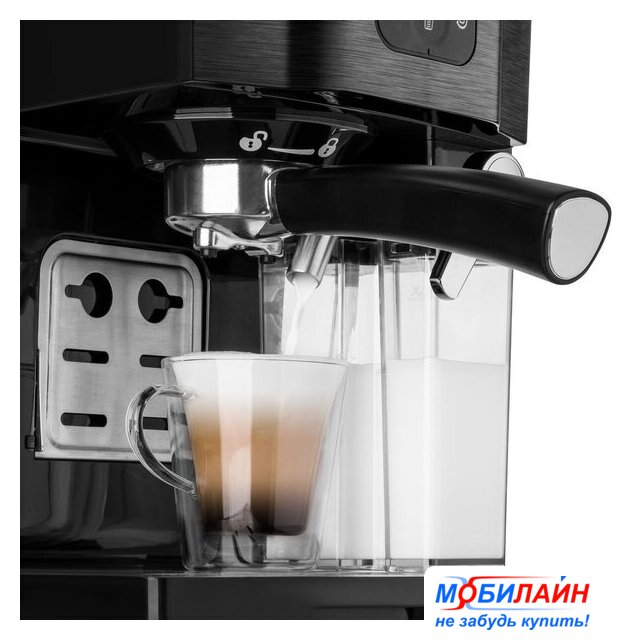 рожковая помповая кофеварка, 1470 Вт, корпус металл/пластик, капучинатор автоматический, используемый кофе: молотый, цвет нержавеющая сталь/черный