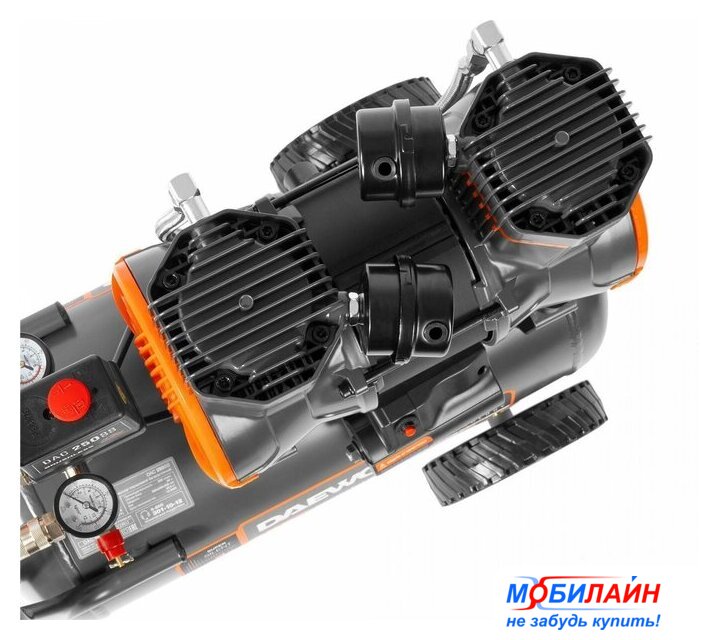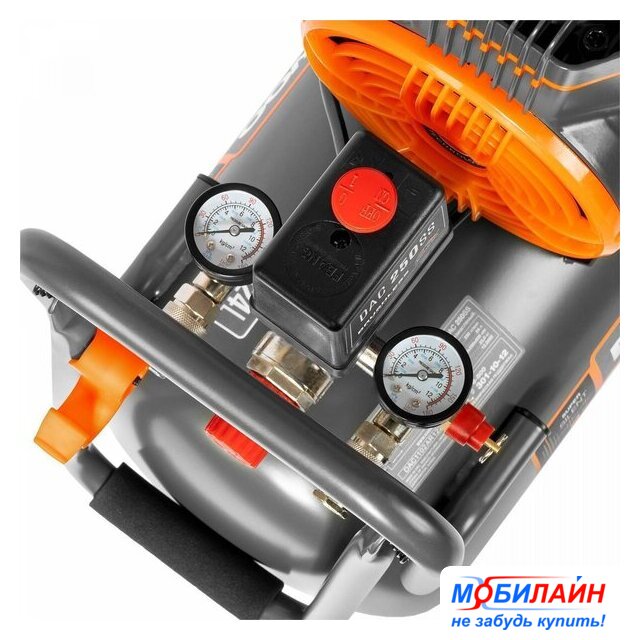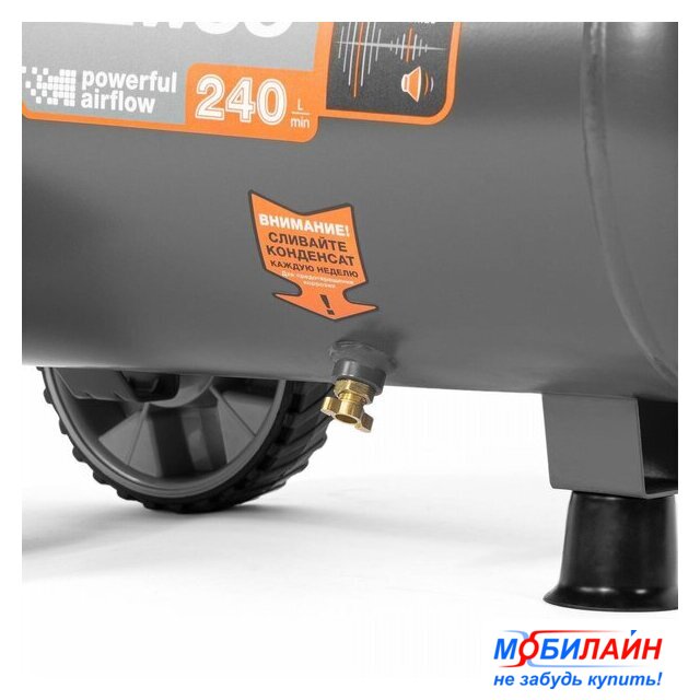 Комплектация | КомпрессорВоздушный фильтр 2 штРезиновые опорыКолесо транспортировочное 2 штРуководство по эксплуатацииГарантийный талон |