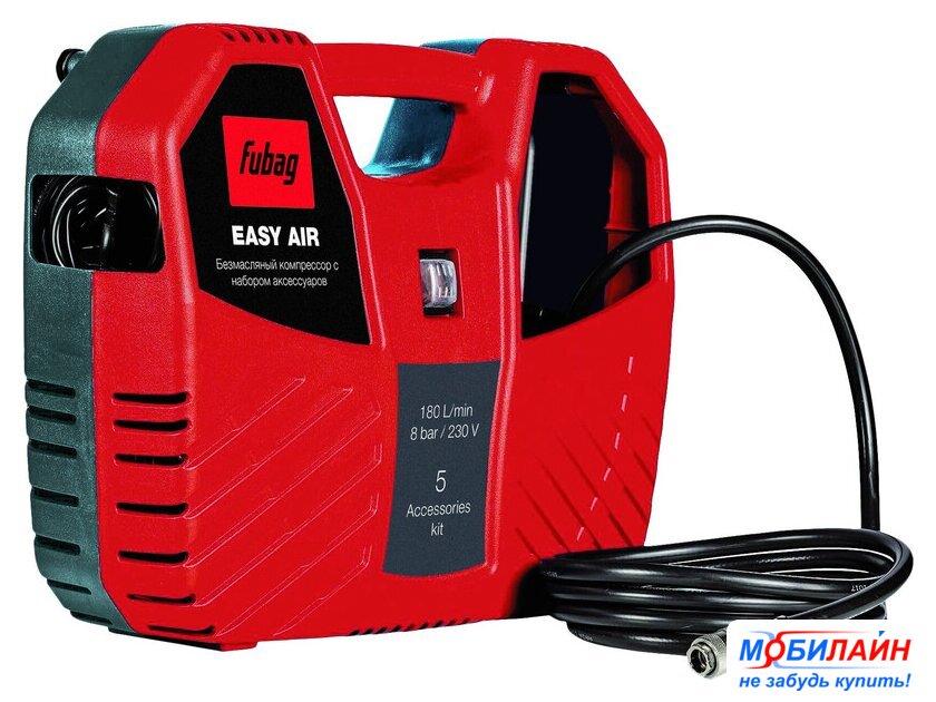 | Комплектация | • Компрессор• Воздушный шланг, 3 м• Пневмопистолет с манометром для накачки• Удлиненная насадка для продувки• Игла для накачки мячей• Универсальный адаптер для клапанов с внутренним диаметром 6 мм• Универсальный адаптер для клапанов с внутренним диаметром 9 мм• Адаптер для накачки велосипедных шин• Насадки для накачки лодок, матрасов, бассейнов• Переходник (для насадок накачки лодок, матрасов, бассейнов) |