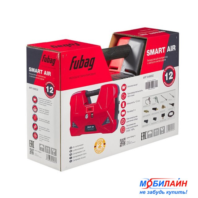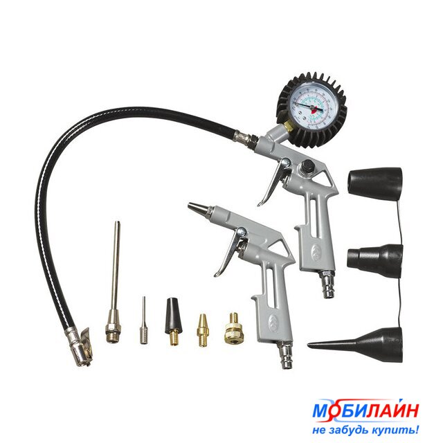 | Комплектация | • Компрессор• Воздушный шланг, 3 м• Пневмопистолет с манометром для накачки• Пневмопистолет для продувки• Удлиненная насадка для продувки• Игла для накачки мячей• Универсальный адаптер для клапанов с внутренним диаметром 6 мм• Универсальный адаптер для клапанов с внутренним диаметром 9 мм• Адаптер для накачки велосипедных шин• Насадки для накачки лодок, матрасов, бассейнов• Переходник (для насадок накачки лодок, матрасов, бассейнов) |