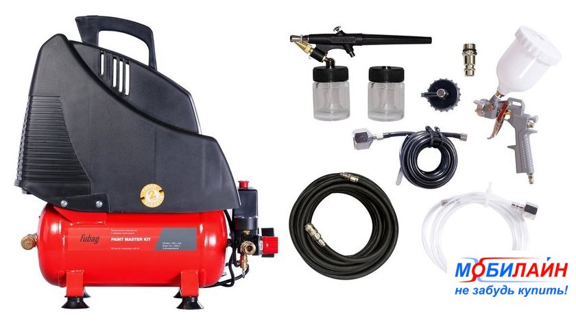 | Комплектация | • Компактный компрессор с ресивером на 6 л• Краскораспылитель с верхним бачком объемом 0,5 л• Аэрограф с двумя сменными бачками• Соединительный резиновый шланг длиной 5 м с быстроразъемными соединениями |