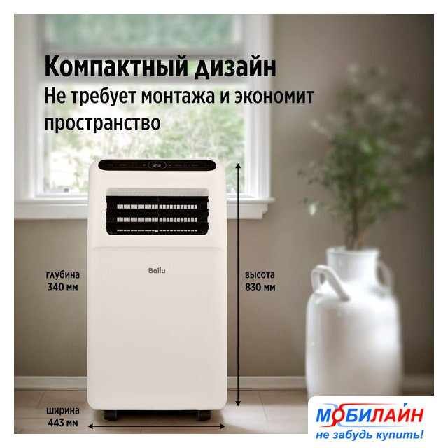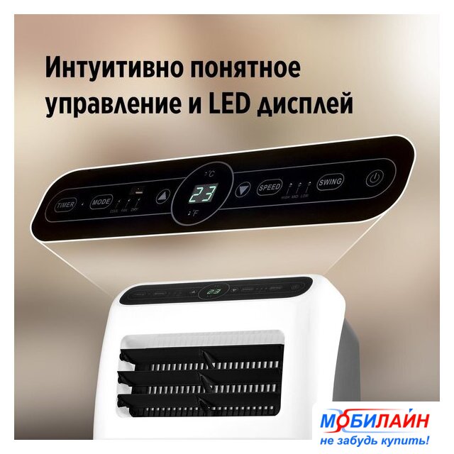 мобильный, мощность охлаждения 3.06 кВт, мощность обогрева 2.49 кВт, обслуживаемая площадь 25 м², шум 45 дБ, Wi-Fi: нет