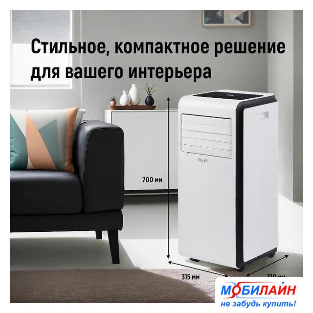 мобильный, мощность охлаждения 2.34 кВт, обслуживаемая площадь 20 м², шум 50 дБ, Wi-Fi: нет