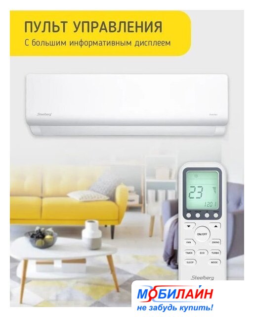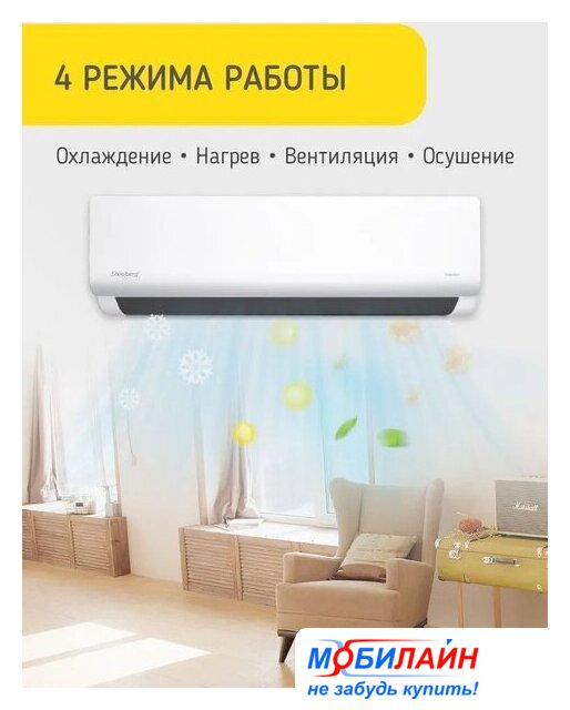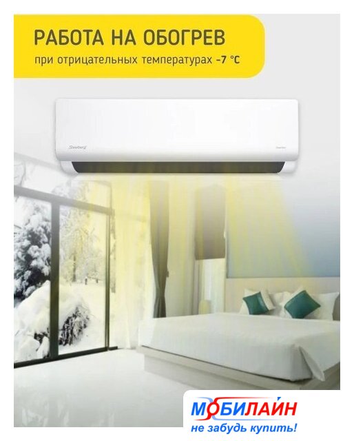 сплит-система, инвертор, мощность охлаждения 3.52 кВт, мощность обогрева 3.66 кВт, обслуживаемая площадь 35 м², шум 22-35 дБ, Wi-Fi: поддерживается, модуль приобретается отдельно
