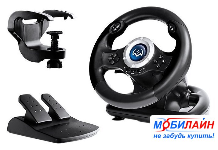руль для PC, 12 кнопок, педали, переключение передач, 0 аналоговых джойстиков, обратная связь, проводной