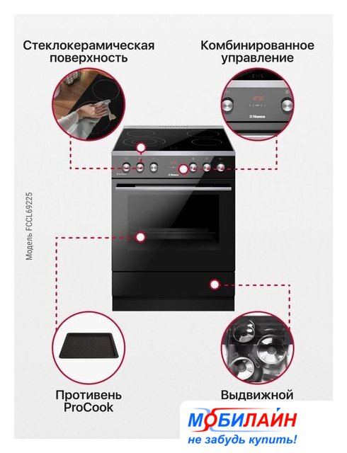 HiLight панель + электрический духовой шкаф, поверхность: cтеклокерамика, энергопотребление A, управление механическое, без таймера, размеры (ШхГхВ): 60x60x85 см, цвет нержавеющая сталь
