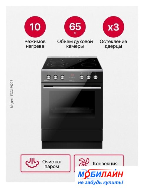 HiLight панель + электрический духовой шкаф, поверхность: cтеклокерамика, энергопотребление A, управление электронное, таймер электронный, размеры (ШхГхВ): 60x60x85 см, цвет черный