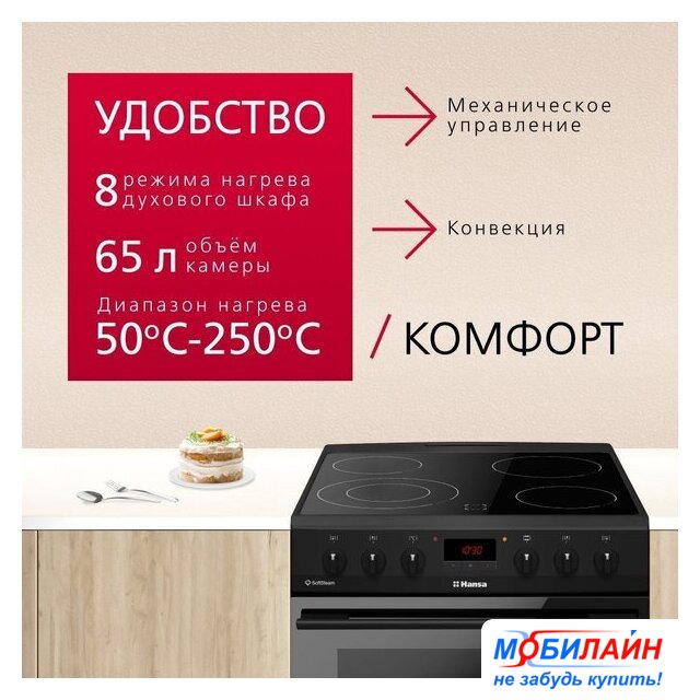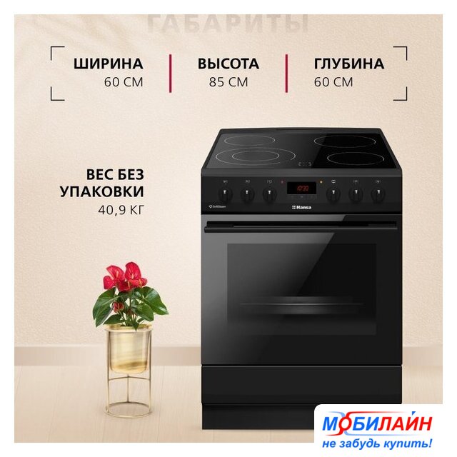 HiLight панель + электрический духовой шкаф, поверхность: cтеклокерамика, энергопотребление A, управление сенсорное, таймер электронный, размеры (ШхГхВ): 50x60x85 см, цвет черный