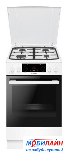 газовая панель + электрический духовой шкаф, поверхность: закаленное стекло, энергопотребление B, управление механическое, таймер механический, размеры (ШхГхВ): 60x60x85 см, цвет белый