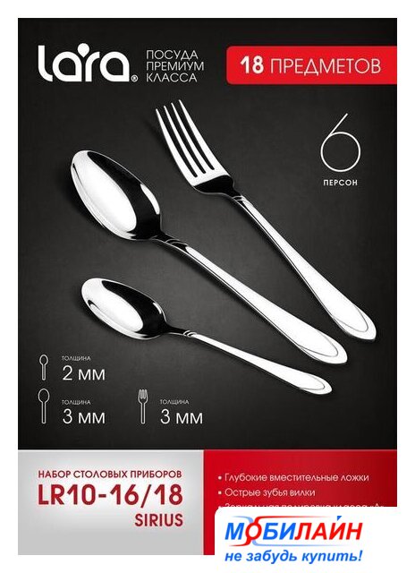 Состав столового набора | вилка столовая, ложка столовая, ложка чайная |