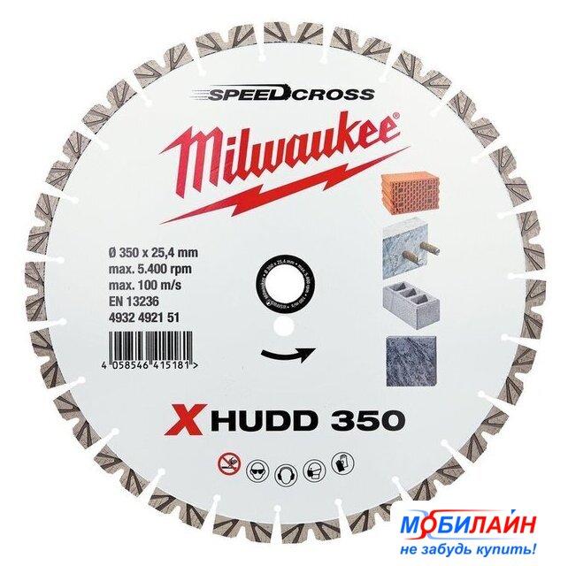 металл, 1 в наборе, 4400 об/мин, сухая резка, 355 мм, посадочный диаметр 25.4 мм