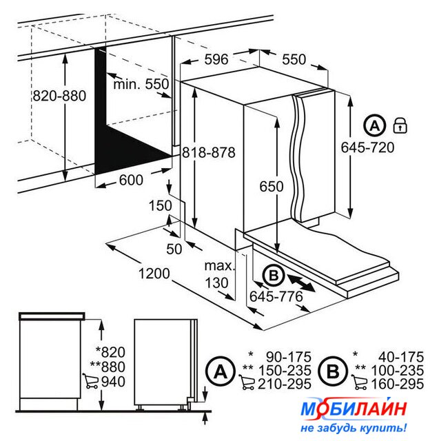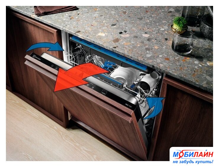 загрузка на 14 комплектов посуды, сенсорное управление, 7 программ, 59.6x55x82 см, черный цвет, сушка: с открыванием дверцы, индикация на полу: проекция дисплея