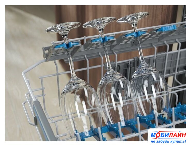 Особенности верхней корзины | регулировка положения по высоте, держатели для бокалов |